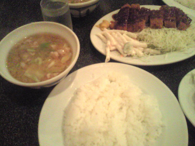 「変わらないって大事なことだよなー」なんて友人と話していると、シェフの原さんが「お客さん、学生の時来てくれてた方?」なんて声をかけてきて大盛り上がり。ここの売りは味と量。からっと揚がったとんかつは、ほんのりとバターの香りがついていて肉質の悪さを充分カバー。豚汁の具は豚の細切れとキャベツのみ。でもどんぶりいっぱいの大サービス。熱々で味も抜群!ライスは300gくらいあるかしら。お皿にいっぱい盛ってあります。これでたったの630円ですよ!安い!ラーメンと餃子を2時間前に完食したばかりなのに、二人とも簡単に完食。いい味してるねー。