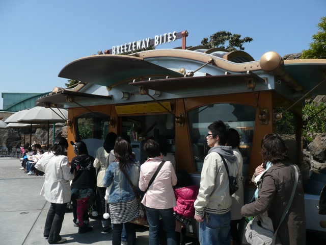 ディズニーシー・エレクトリックレールウェイの「ポートディスカバリー駅」を降りるとすぐ目の前に、「ブリーズウェイ・バイツ」というワゴン店舗があります。ここのパイが絶品なんですよ。ほめすぎかな-?少なくとも私は好きです。