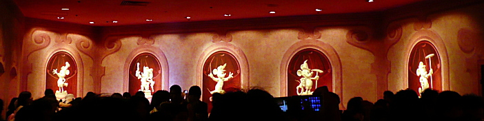 スムーズに入れたものの、かつて見たことのない「満員御礼」状態。プレショーにはミッキーのいろいろな姿が描かれているのですが、その一枚一枚に別れを惜しむかのようにシャッターを切る方がたくさんおられました。