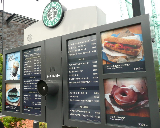 ここで注文するのですが、さながらマックのドライブスルー。これは画期的ですねー。都心にあったら利用するのになー。でもスタバのコンセプトには「落ち着いた空間の提供」も含まれているようですから、ドライブスルーはちょっと路線が違いますよね。やっぱり増えないかな。