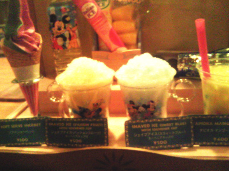 通常メニューに加えて、夏休み限定で「シェイブアイス(かき氷)」を販売中。シェイブアイスはTDLでもTDSでも「今がチャンス」とばかりにあちこちで販売されてますが、味が何種類もあるので食べ比べるのもいいかも!