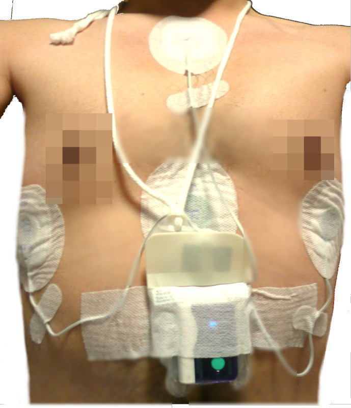 で、急いで帰宅してかかりつけ医のところへ。心電図をとると、「あー確かに狂ってますねー。「心室細動が@$&~?#、P波が^*~"&%」と、何を言われているのかわかりません・・・。とりあえず、一日心電図をとってみましょうと言われ、変な機器を取り付けられました