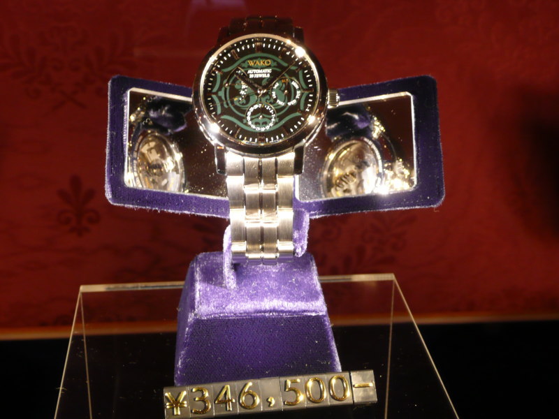 和光プロデュースなので宝石がちりばめられていますが、注目すべきはその文字盤。クラブ33のロゴが葵の御紋のようにデーンと(笑)デザインされています。これを見せると全てのアトラクションで優先入場。クラブ33も予約なしで入れます・・・なんて特典があればすぐ買ったのですが(あるはずない)、デザインがねー。