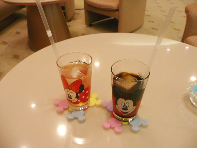 写真には写っていませんが、この左手ではビデオを上映していたり、キャラクターぬいぐるみが置いてあったり、子供連れでもくつろげるような工夫がされています。飲み物を勧められるのですが、ホットコーヒー・紅茶・アイスコーヒー・アイスティー・緑茶・リンゴジュースから選び、コップに注いでいただく形式です。セルフではありません。