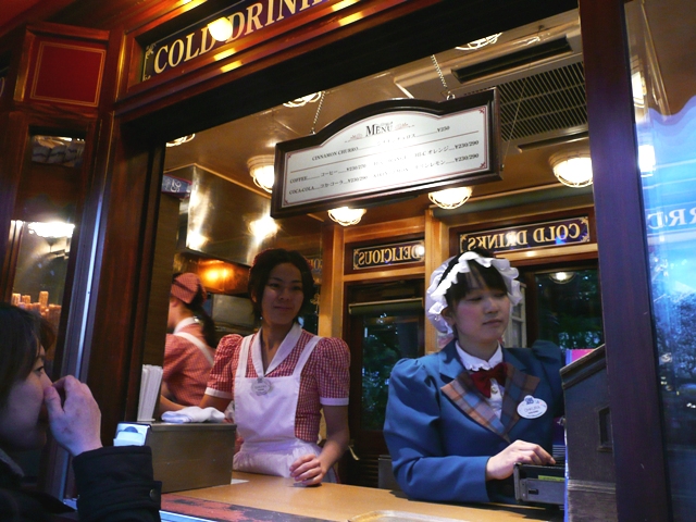 ここではチュロスしか販売していないのですが、ものすごい人気。いつでも人の列が絶えません。ここのキャストは狭い中での忙しさにストレスを感じないのでしょうか?