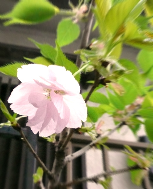 この一年はどちらかというと放っておきました。庭で吹きさらしですから、豪雨の日も暴風の日も、真夏の強い日差しの中でも桜は我慢しなければなりません。これまでに比べれば劣悪な環境です。ところが・・・なんと、今年は咲いたんです!数日前に、先駆けて一輪の桜が。